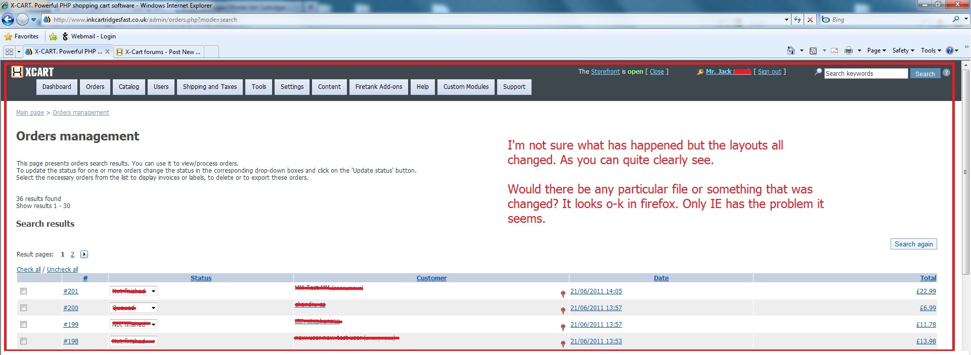 Basically my admin side in my xcart has went all strange, it only happens in IE, well most of it.