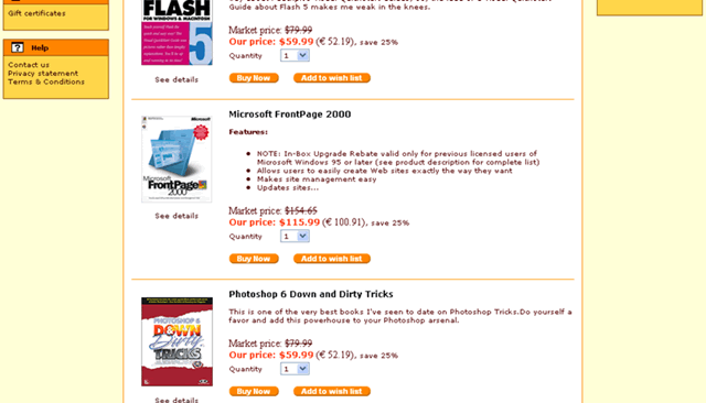 I just bought this X-cart software a couple of weeks ago, so I'm just testing this program for bugs on my own server before I go online. Unfortunately, I'm unable to give you a link of the problem from my site, but here is a link of a store online that has the same problem. http://www.xcartdesigner.com/home.php?cat=24 Look at the 'Buy now' button. It doesn't line up with the 'Buy now' button of the product above nor the 'Buy now' button of the next product. If I find many bugs with this software, I like to be still able to return it for a full refund. Thanks, - MoonDog -