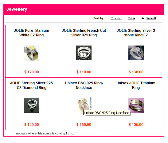 Can anyone help me? I am trying to get the same look in IE as what I currently get in Firefox when displaying my products for a given category (see attachments). By sheer luck, the firefox version is basically the look I am after.