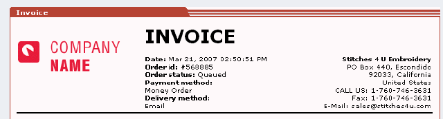 Thank you that worked. I knew it could be done. I am so proud of x-cart once again. How do I change the logo on the invoice though. It says Company Name and it is in red. I thought my logo that is on my home page would be on the invoice as well but I was wrong. Look at the picture!