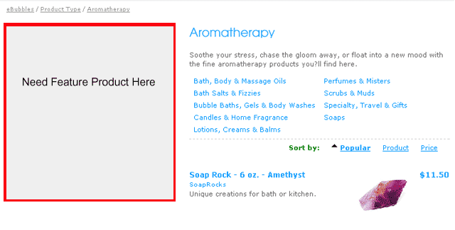 It's really in the left quadrant of the subcategories template. I didn't think about using the left menu. Since I'm not using the vertical menus, maybe it's possible to resize a left menu and show the product there.