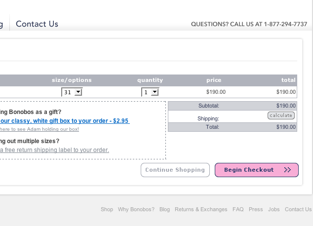 Bonobos.com shipping calculator | |||