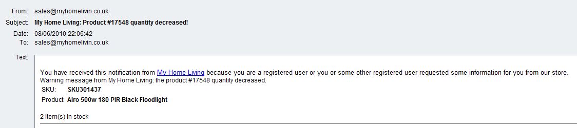 final picture shows the email. just from a dummy site I use to test tells you stock left