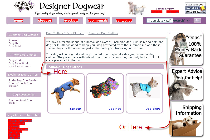 Here is the page: http://www.designerdogwear.com/summer-dog-clothes/